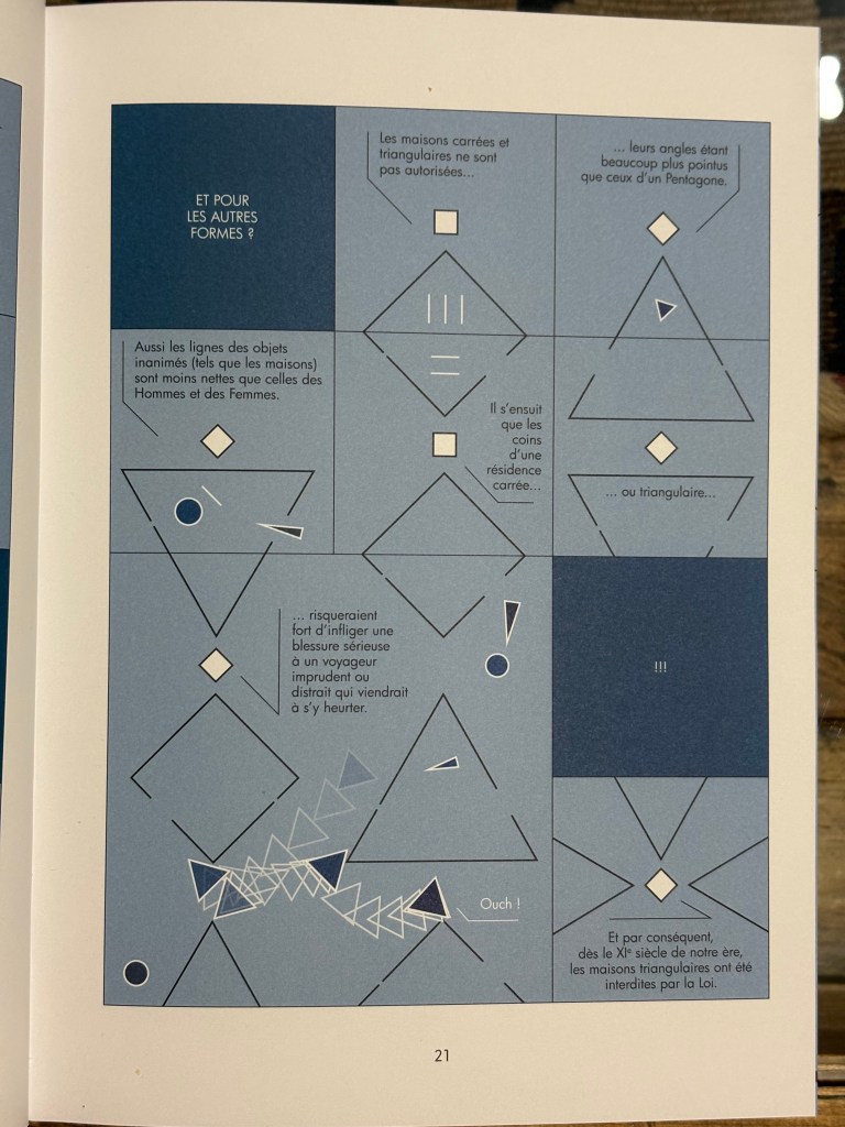 Toujours dans ma boulimie de lecture, en ce week-end pluvieux, j’ai fini Flatland de Danicollaterale, d’après le roman philosophico-scientifique de Edwin A. Abbott, écrit au XIXème.